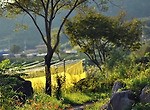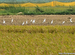 봉하마을에서 제일 먼저 타작한 이기우농부의 논에 백로들이 모여있다.